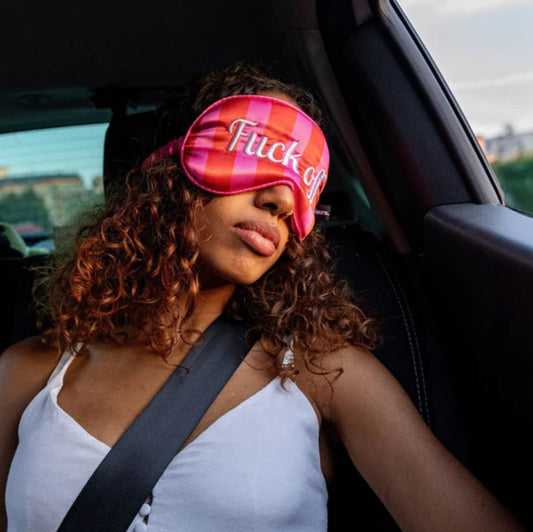 VyprodánoPruhovaná maska na spaní Fuck Off
