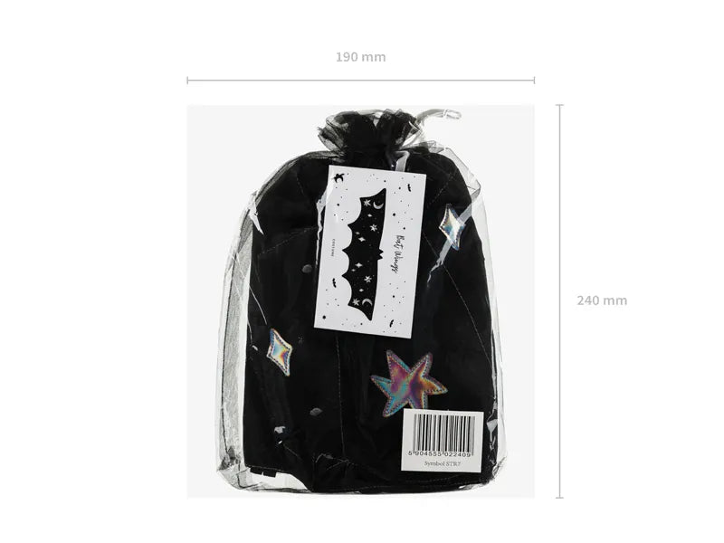 Proměňte malého dobrodruha v okouzlující noční stvoření: netopýří křídla v černé barvě se stříbrnými detaily rozzáří Halloween, karneval i domácí převlékací hry.