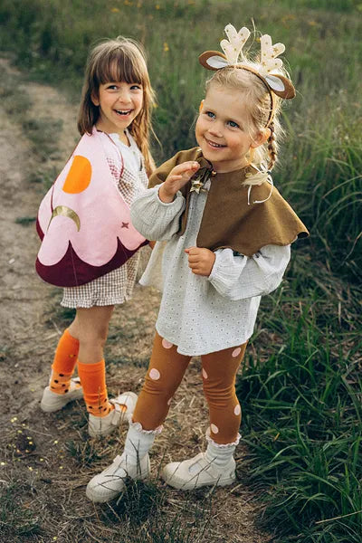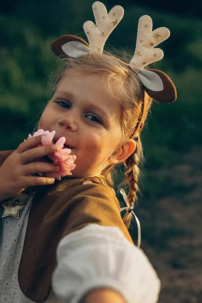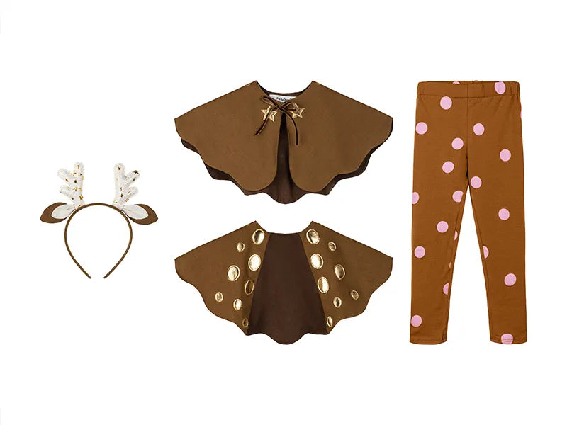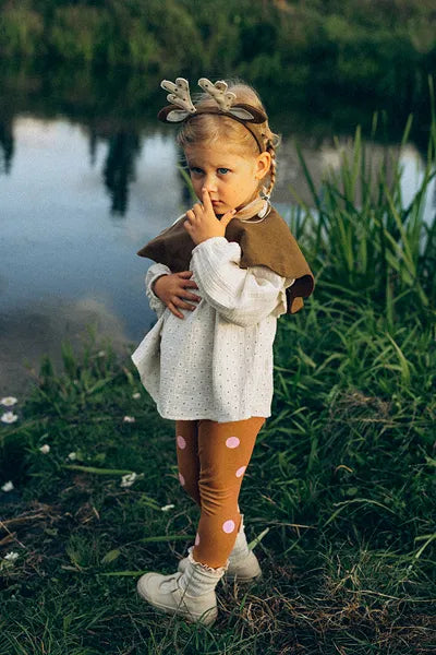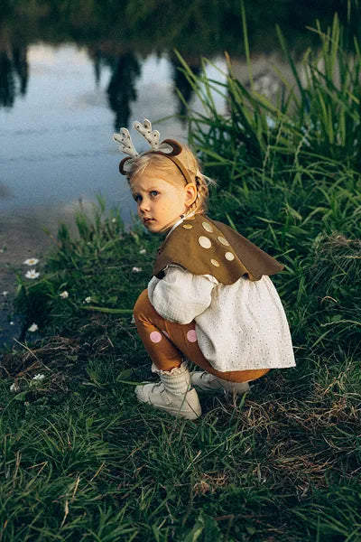 Proměňte malou parádnici v něžnou srnku: roztomilý kostým v mixu barev potěší na karnevalu, Halloweenu i při domácím převlékání. Lehoučký pláštík, pohodlné legíny a čelenka s oušky a parůžky vykouzlí okouzlující lesní look během chvilky.