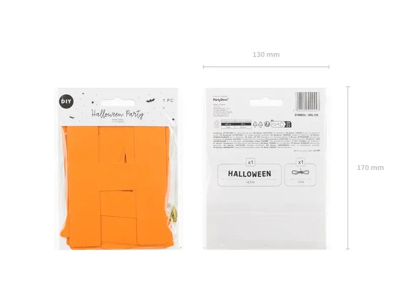 Papírový nápis HALLOWEEN v sytě oranžové barvě doladí výzdobu na party i fotokoutek. Produkt typu DIY – písmena si navléknete na přiloženou šňůru přesně podle potřeby.