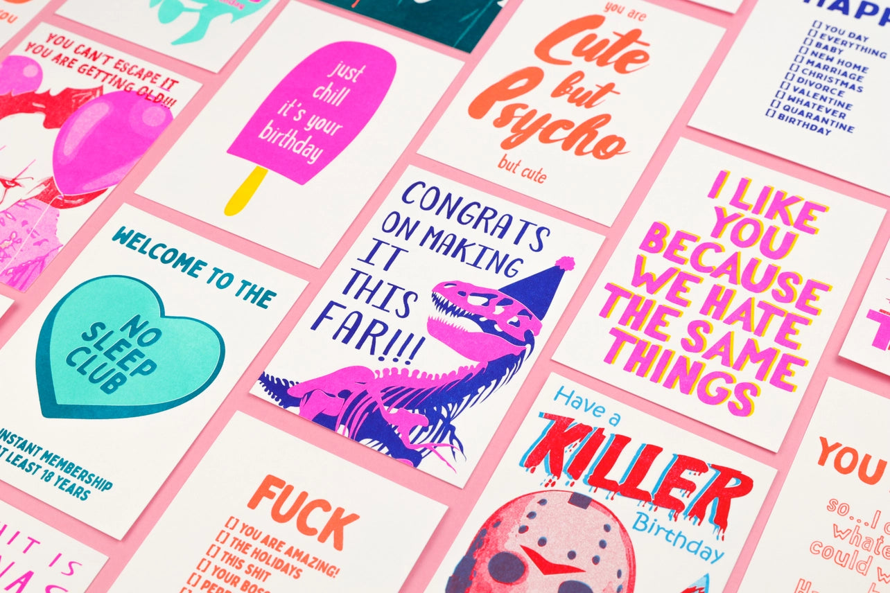 Pohlednice je tištěná technikou RISO, která připomíná sítotisk a dodává každému kusu lehce ruční, originální vzhled. Skvělá jako přání, malý vzkaz nebo stylový detail do interiéru.