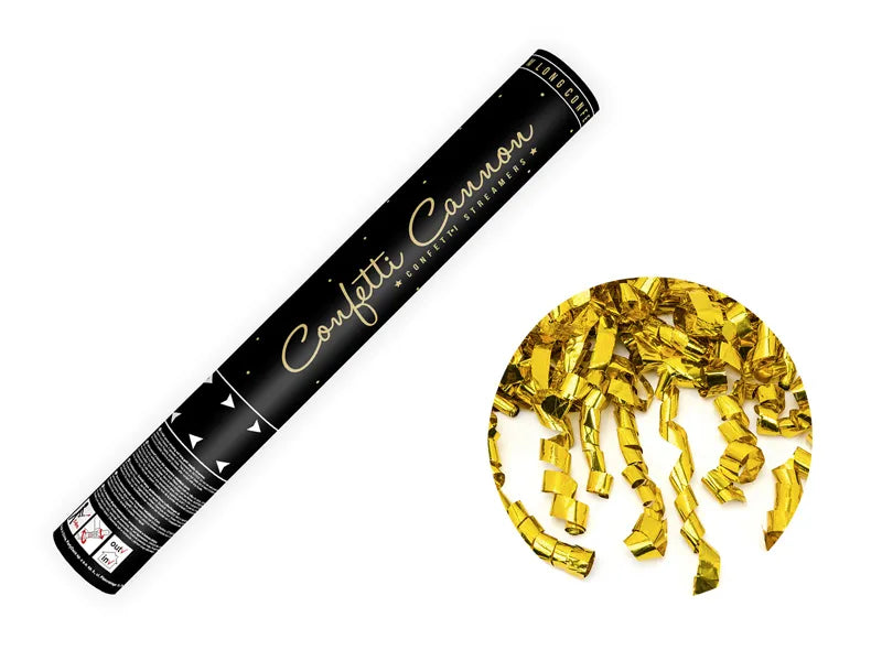 Dodejte své oslavě ten pravý wow efekt! Tato tuba se zlatými serpentýnami při otočení vystřelí dlouhé třpytivé pásky, které se krásně rozvinou do prostoru a vytvoří slavnostní moment plný radosti a překvapení. Skvěle se hodí na Silvestra, narozeniny, svatby, firemní večírky i jakoukoli událost, které chcete dodat atmosféře výjimečný okamžik.